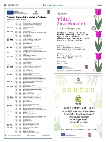 22 | MĚSTSKÉ LISTY Komunitní centrum ÚnOr