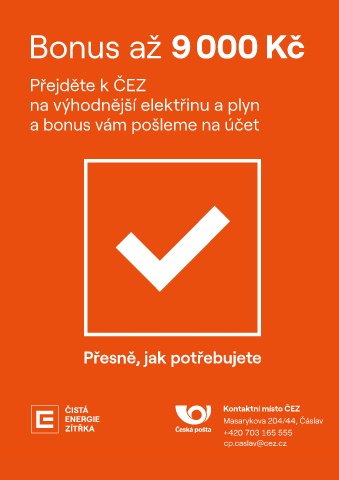 Bonus až 9 000 Kč Přejděte k ČEZ na výhodnější elektřinu a plyn a bonus vám pošleme na účet Přesně, jak potřebujete Kontaktní místo ČEZ Masarykova 204/44, Čáslav +420 703 165 555 cp.caslav@cez.cz