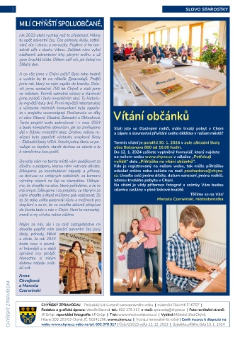 webu www.chyne.cz nebo na tel. 602 378 317 | Číslo 6/2023 vyšlo 22. 12. 2023 | Uzávěrka příštího čísla 10. 1. 2024
