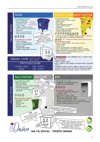 www.dacice.cz NOVINKA Lze ukládat PLATA OD VAJEC Od 1.1.2026 lze ukládat i plechovky od nápojů. PROVOZNÍ DOBA Pondělí - pátek 8:00 - 16:00 h Sobota 8:00 - 12:00 h 9
