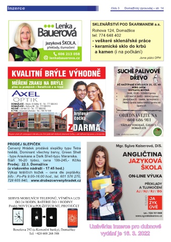 Inzerce číslo 3 Domažlický zpravodaj – str. 14