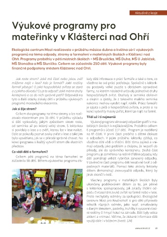 programů na téma odpady, stromy a farmaření v mateřských školách v Klášterci nad