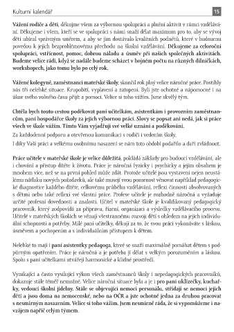 ální schopnosti a potřeby. Milé paní učitelky, děkuji za to, že svou práci vykonáváte s láskou,