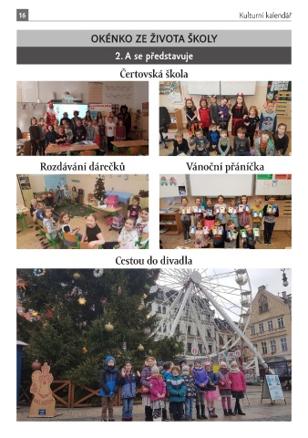 16 Kulturní kalendář OkÉNkO ze ŽIVOta ŠkOly 2. a se představuje Čertovská škola Rozdávání dárečků Vánoční přáníčka Cestou do divadla