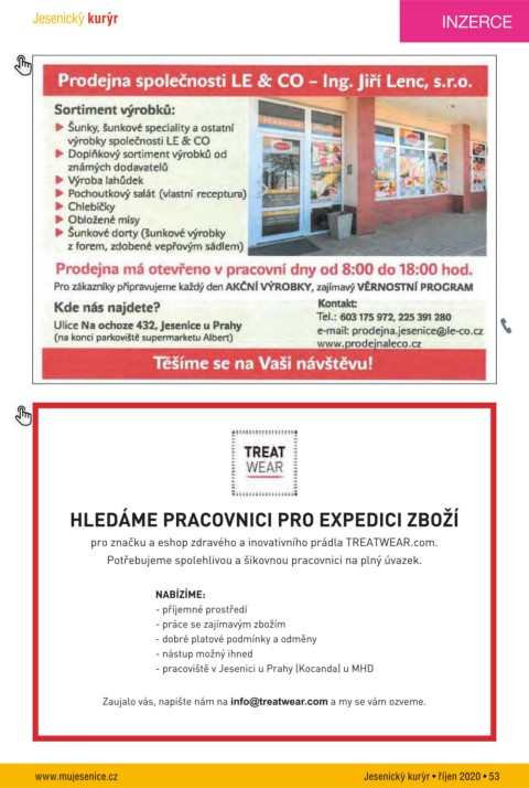 Jesenický kurýr INZERCE ! " # ' ' " ( ' & ) & ' ( " ' ! ) * & +, - ./0 $ % ! & www.mujesenice.cz Jesenický kurýr • říjen 2020 • 53