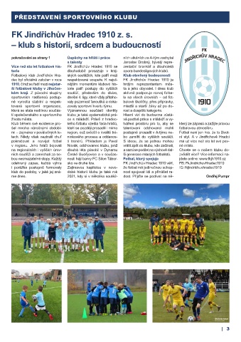 Fotbalový klub Jindřichův Hra- ských soutěžích, kde patří mezi Klub otevřený budoucnosti