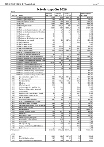 k ŘIŽaNovsk Ý ZpRavoDa J strana 7 návrh rozpočtu 2026