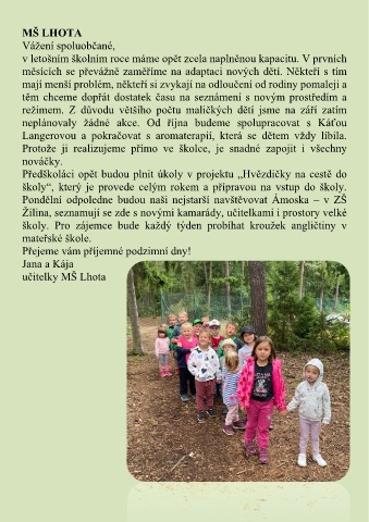 v letošním školním roce máme opět zcela naplněnou kapacitu. V prvních
