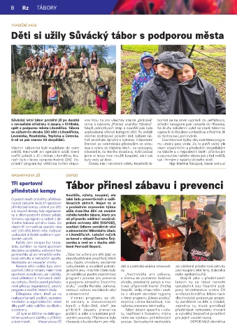 z 1. stupně. Kempy byly organizová- užila dvacítka dětí na osmém