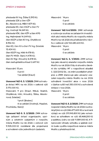 Procházka, Slaný) rozpočet města Modřic na rok 2026 na stra-