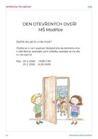 INFORMACE PRO OBČANY 1/26 24 ZPRAVODAJ MĚSTA MODŘICE
