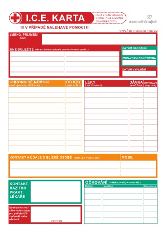 I.C.E. KARTA ÚDAJE SLOUŽÍ K INFORMACI