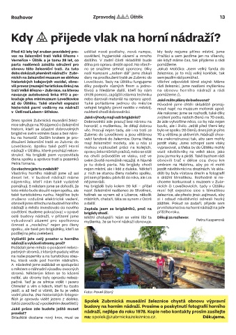 vili provoz (muzejní turistickou linku) na díky podpoře různých firem a jedno- rádi železnici, jsme nadšeni myšlenkou
