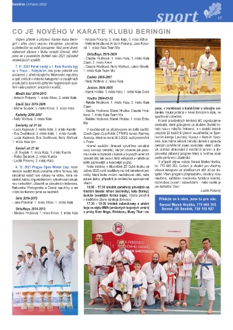 - Jana Pokorná: 1. místo Kihon, 1. místo Kata 17:30 - 19:00 trénink sebeobrany a umění Sensei Marek Hruška, 775 665 353