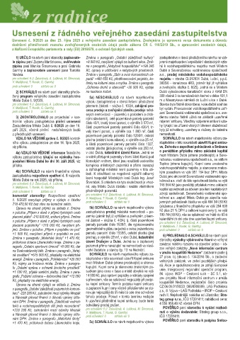 Usnesení č. 9/2025 ze dne 23. října 2025 z veřejného zasedání zastupitelstva. Zveřejněna je u p ra vená verze dokumentu z důvodu