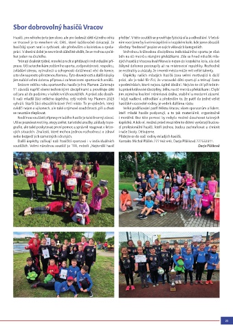 Trénují dvakrát týdně, mnohé z nich si přidávají i individuální pří- dých hasičů z Vracova kvalifikovalo nejen do krajského kola, ale dvě