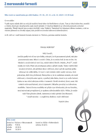 Mše svaté se zaměřením pro děti budou: 19. 10., 23. 11. a 24. 12. 2025 v 15.30 hod.