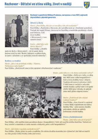 Rozhovor s pamětnicí Eliškou Prušovou, narozenou v roce 1937, nejstarší