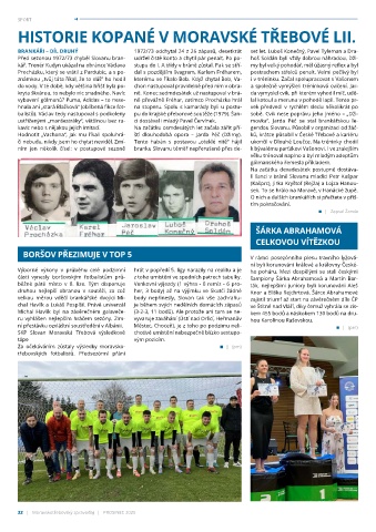 části vynesly boršovským fotbalistům prů- z toho umístění ve spodních patrech tabulky. šampiony šárka abrahamová a martin Bar-