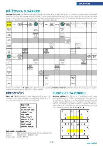 Tři luštitele, kteří nám do 15. srpna zašlou správnou tajenku na adresu: krizovka@ovajih.cz, odměníme malým dárkem. Vylosovaní úspěšní