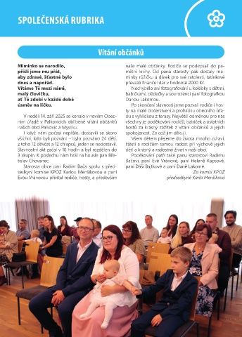 našich obcí Palkovic a Myslíku. hostů za krásný zážitek z vítání občánků a jejich
