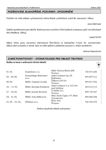 Nezávislý zpravodaj Rtyně v Podkrkonoší květen 2025