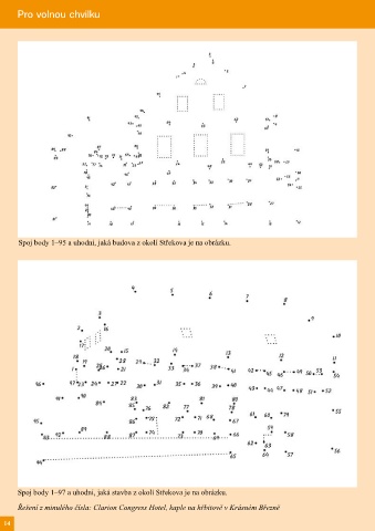 Pro volnou chvilku Spoj body 1–95 a uhodni, jaká budova z okolí Střekova je na obrázku. Spoj body 1–97 a uhodni, jaká stavba z okolí Střekova je na obrázku. Řešení z minulého čísla: Clarion Congress Hotel, kaple na hřbitově v Krásném Březně 14 14