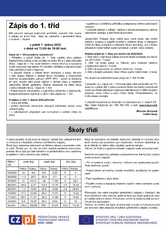 školního poradenského zařízení (PPP, SPC - termín si domluvte Pro školní rok 2022/2023 bude přijato do 1. tříd 70 dětí.