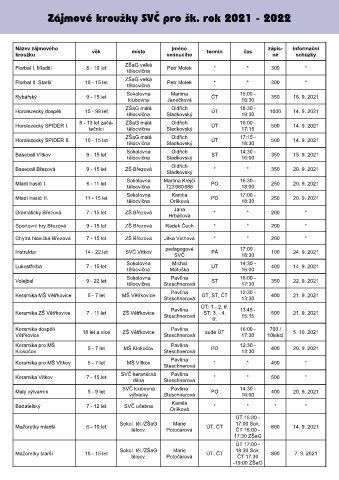 Zájmové kroužky SVČ pro šk. rok 2021 - 2022
