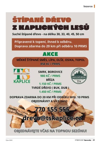 Zpravodaj_říjen_2025_Sestava 1 25.09.2025 10:24 Stránka 23 Inzerce říjen 2025 VYŠEBRODSKÝ Zpravodaj 23