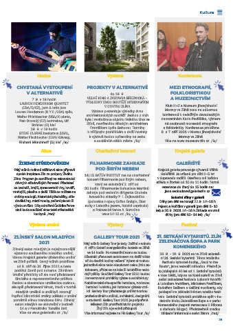 výstavou současného mladého umění, ve 14 hodin. Po rozeznění zvonu se budou 23. 9. – 24. 9. 2021 se ve Zlíně uskuteč-